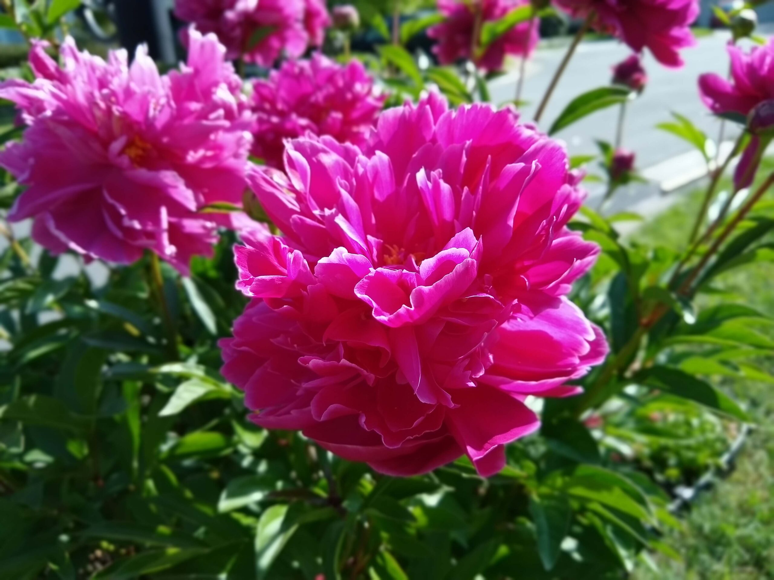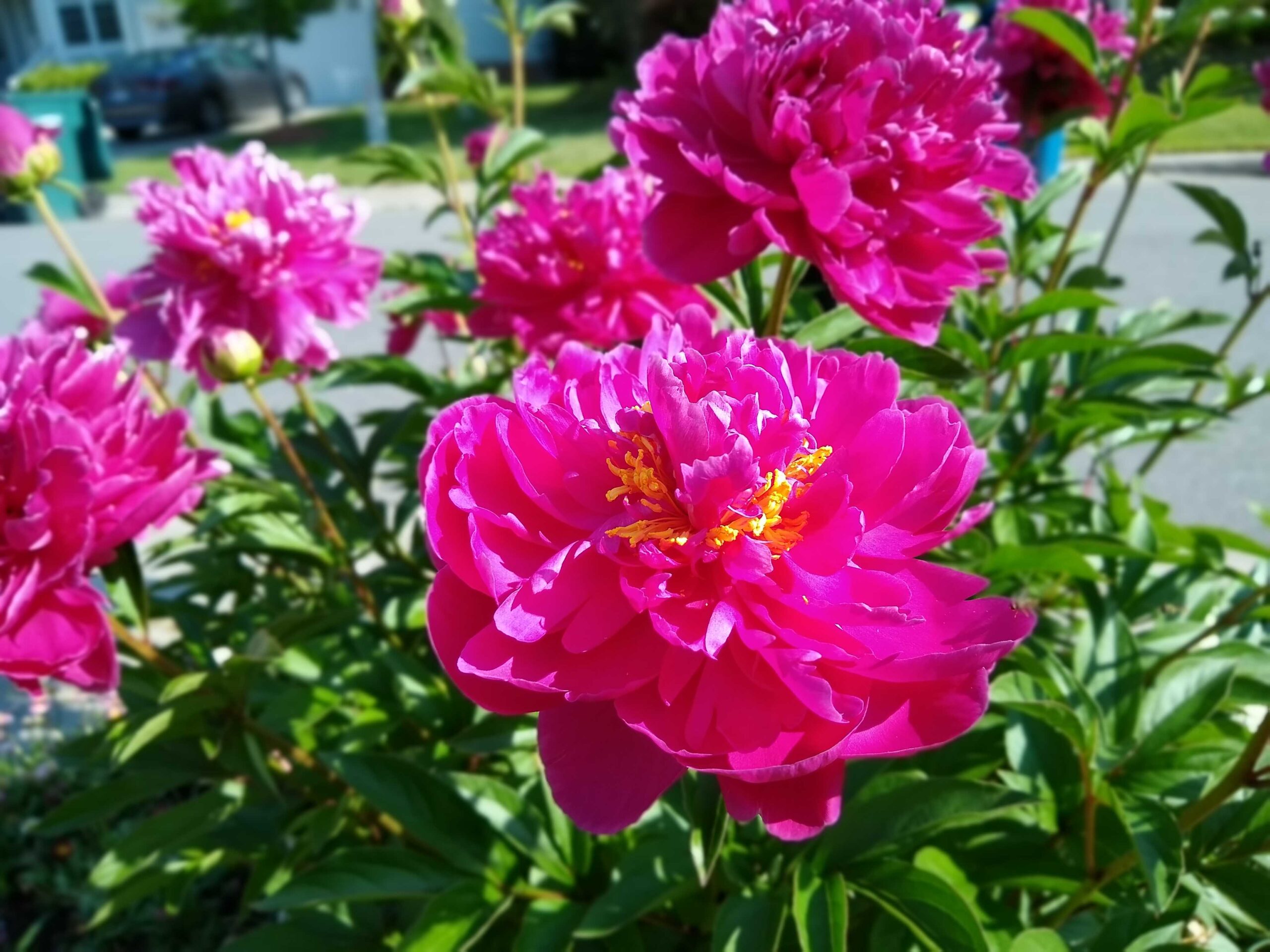 They are at it again.  They are showing off.  These peonies at my mailbox that I wrote about a few years ago, when I was struggling with the unexpected.